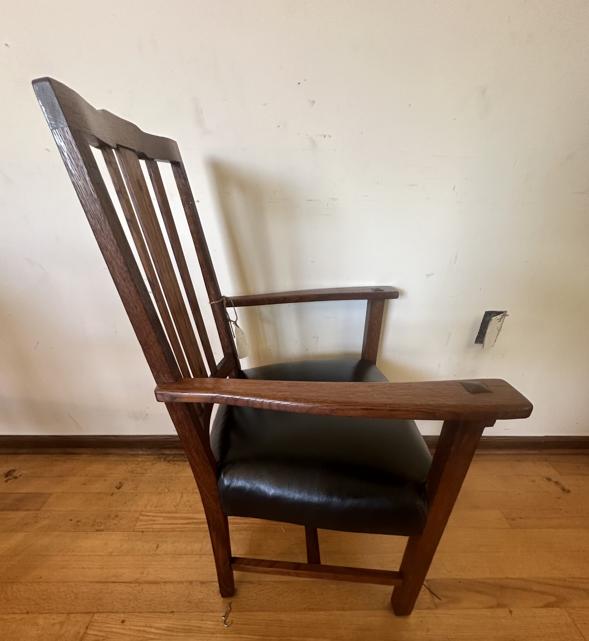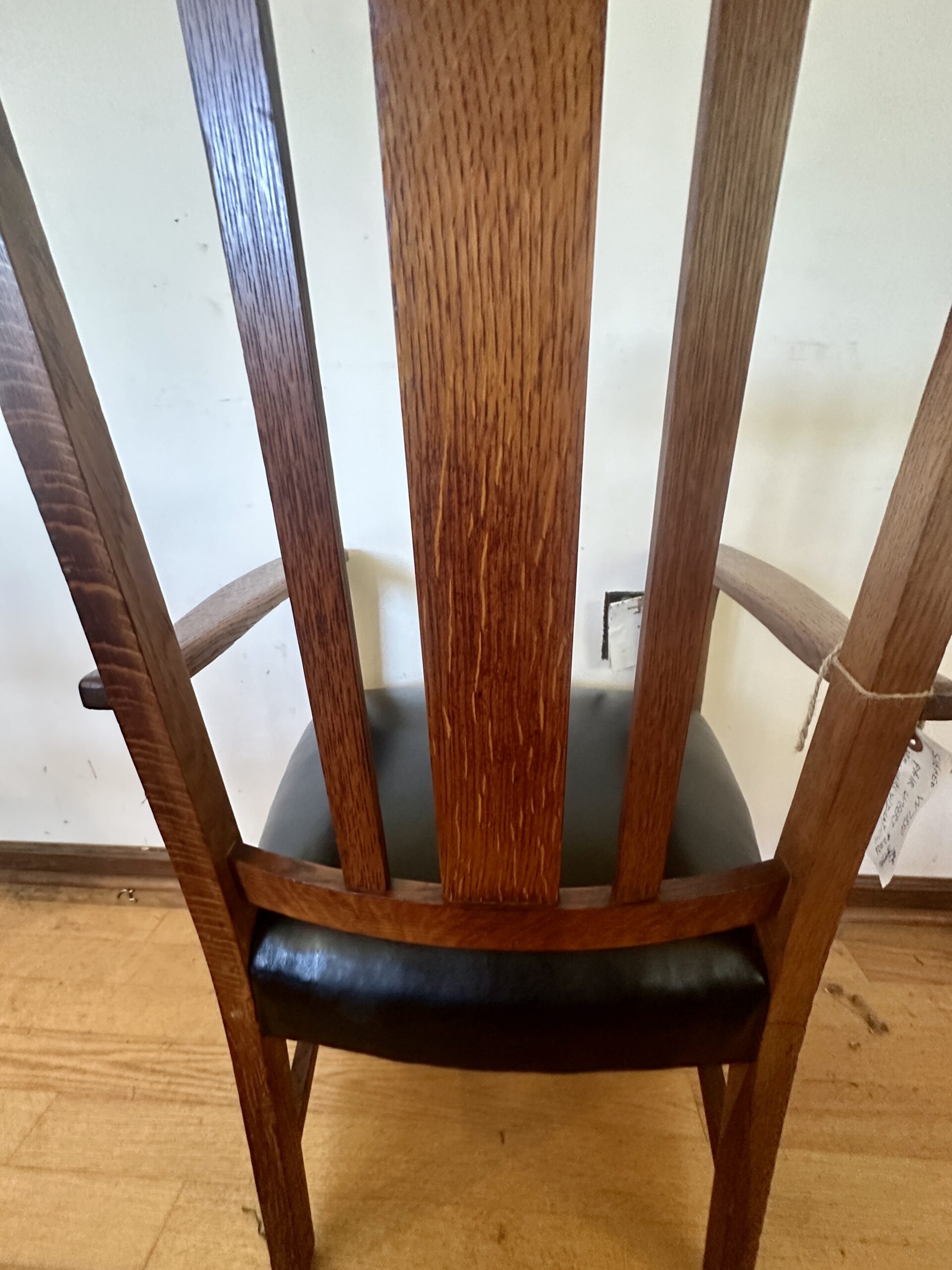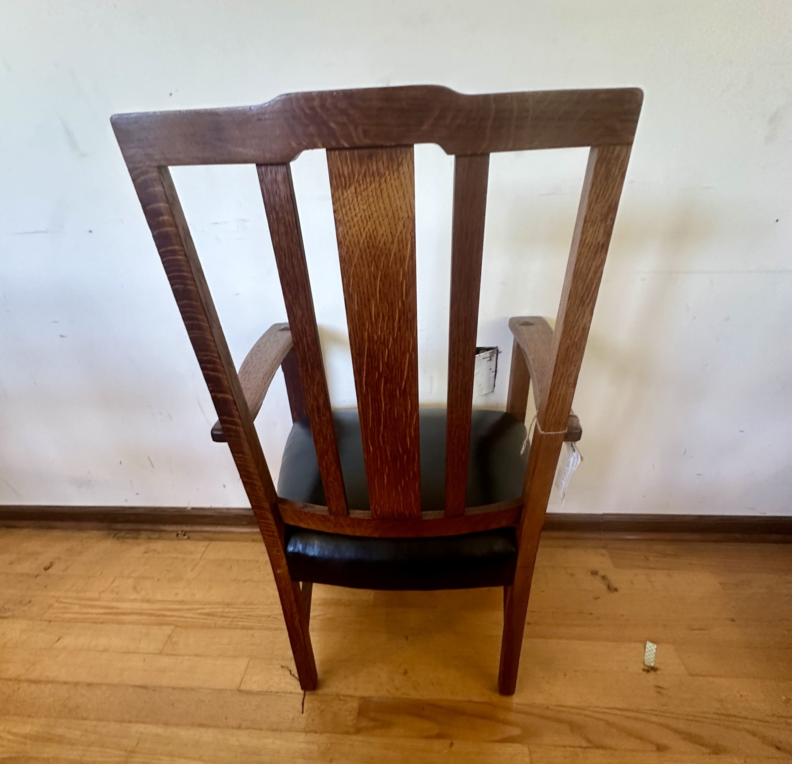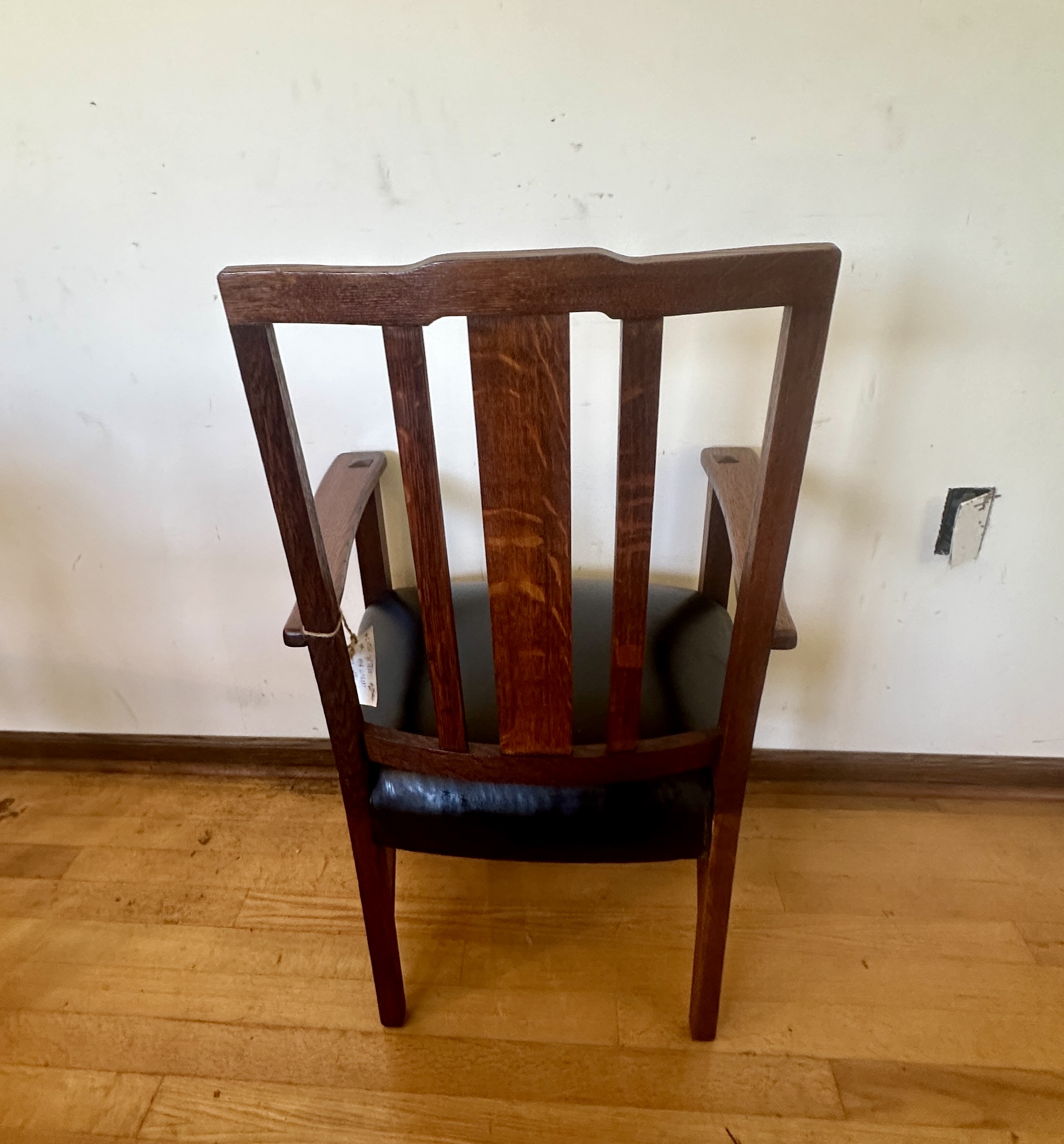 This is a pair of large Limbert arm chairs with inlay and original spring seat with cotton webbing not plywood like newer recreations you see nowadays, this has original finish in good condition and marked as pictured, and pinned as pictured.