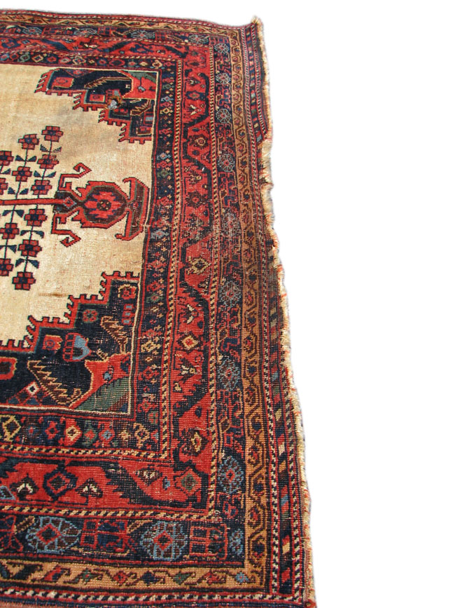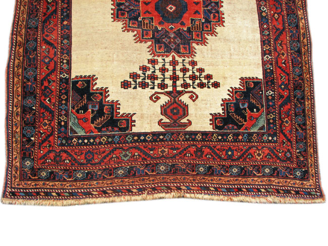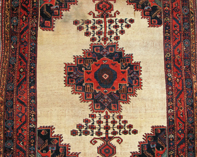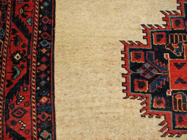 The rug has a rare ivory background with and excellent medallion design.