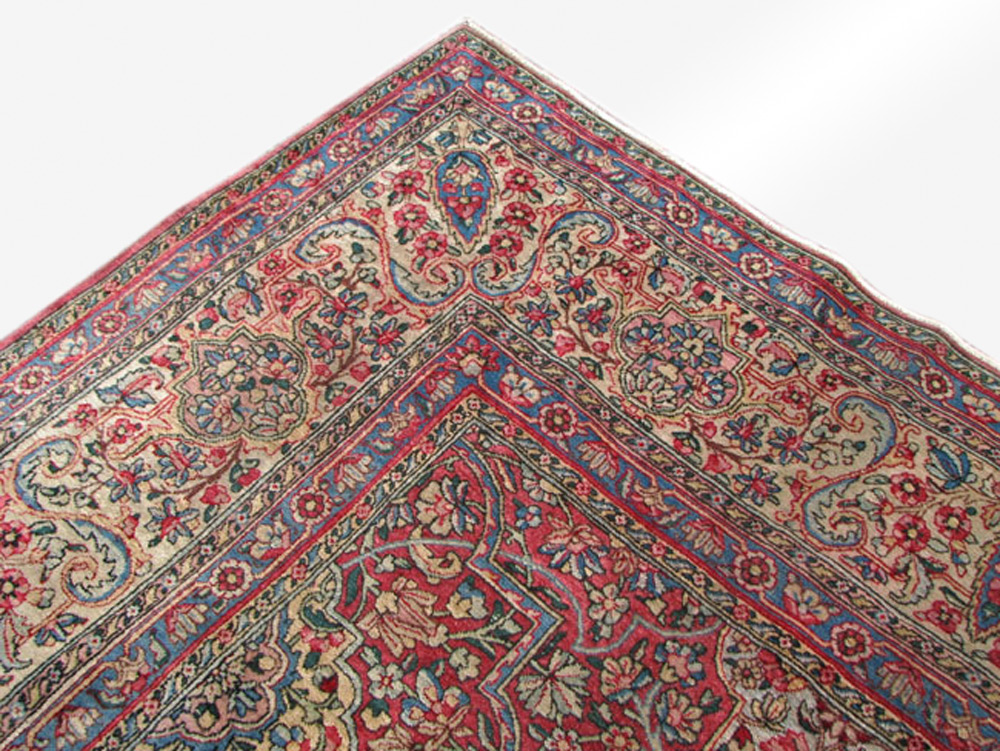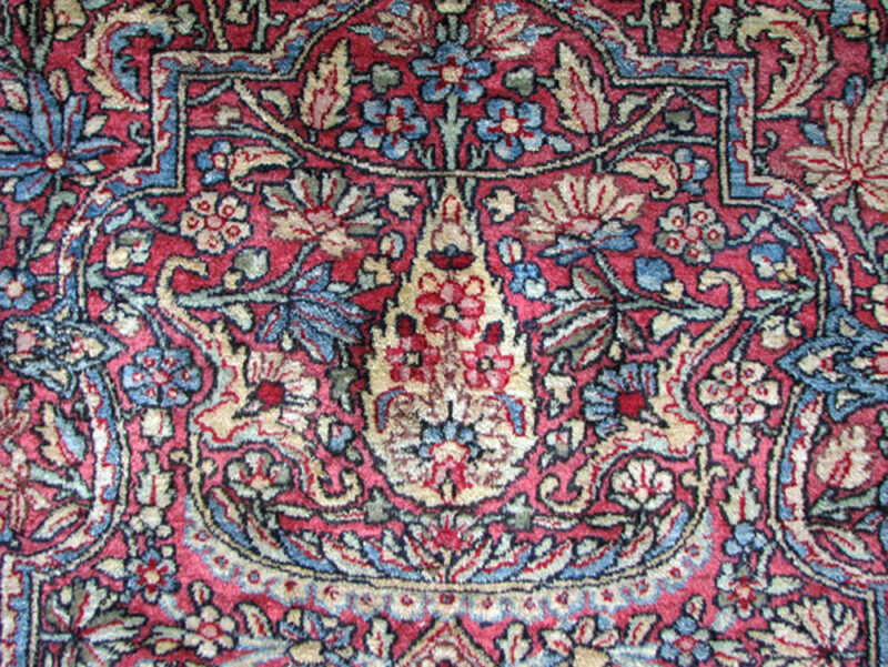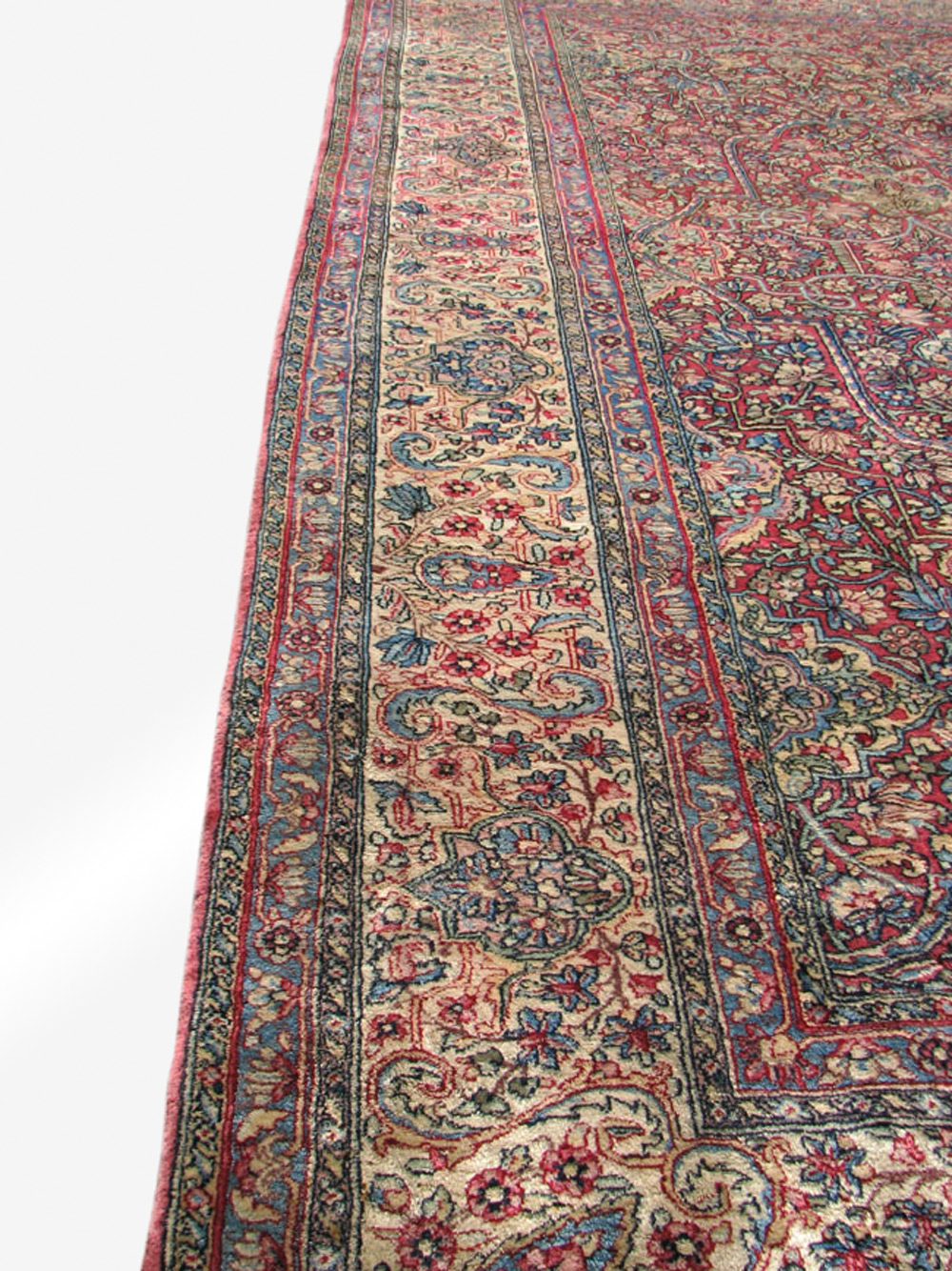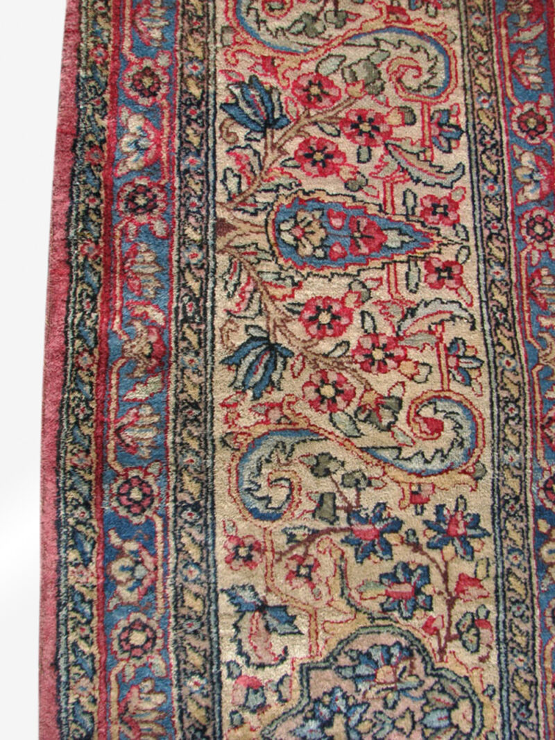 This is an antique Persian Lavar Kerman oriental rug from the 1890s.