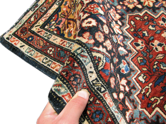The rug has 100% wool, hand knotted pile that is full throughout with no low areas.