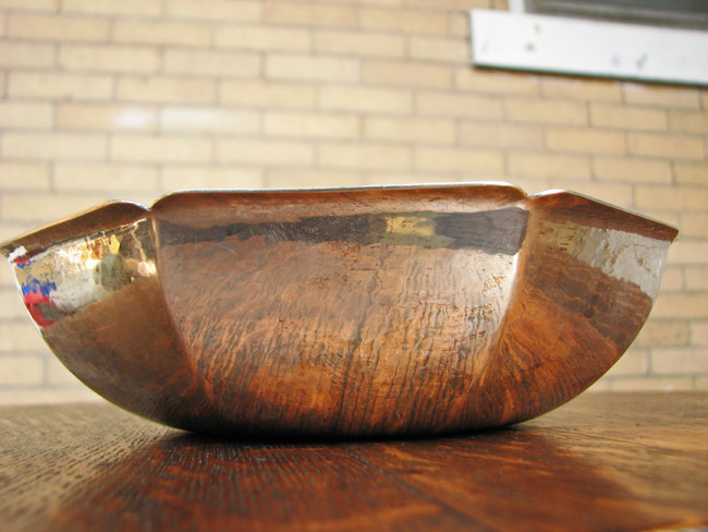 The piece is very thick and heavy and has a nice hammered surface texture.
