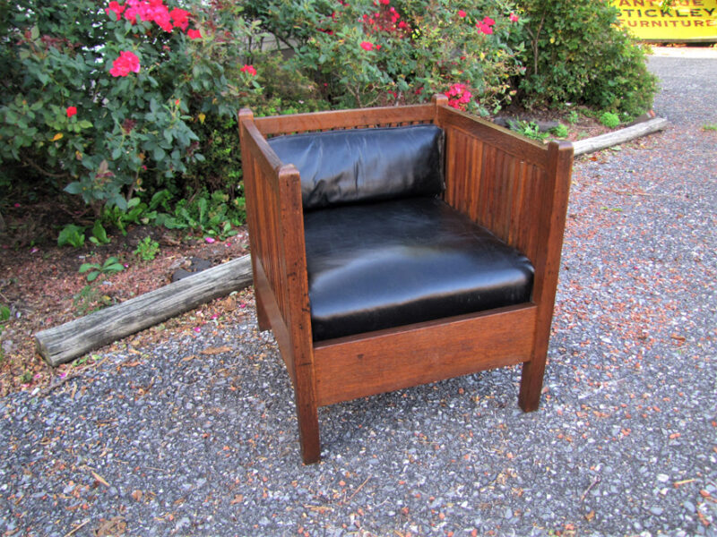 This is an antique and rare G.?Stickley cube chair Mission Arts and Crafts period from early 1900’s in very good condition.