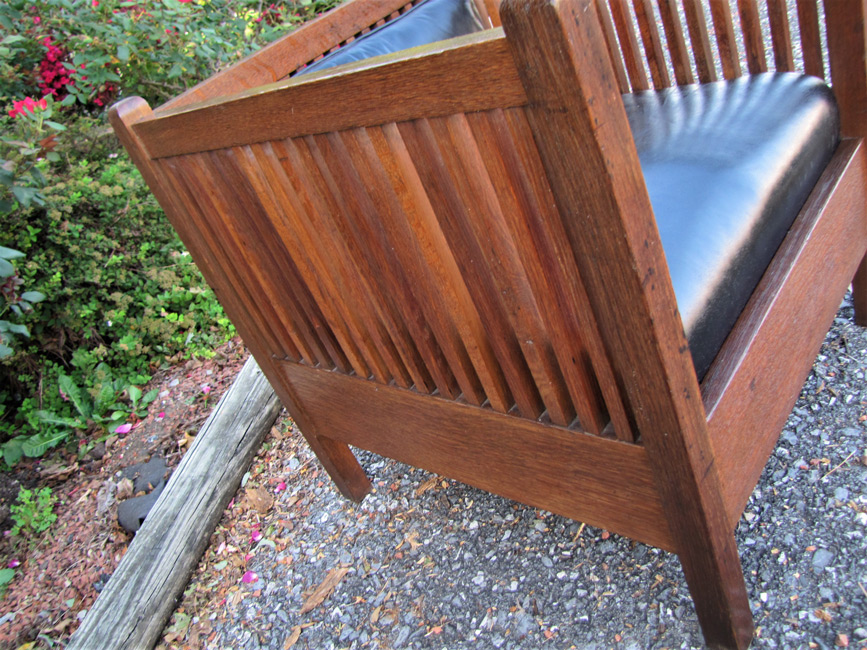 The chair made of quarter sawn oak with original finish with light cleaned finish.