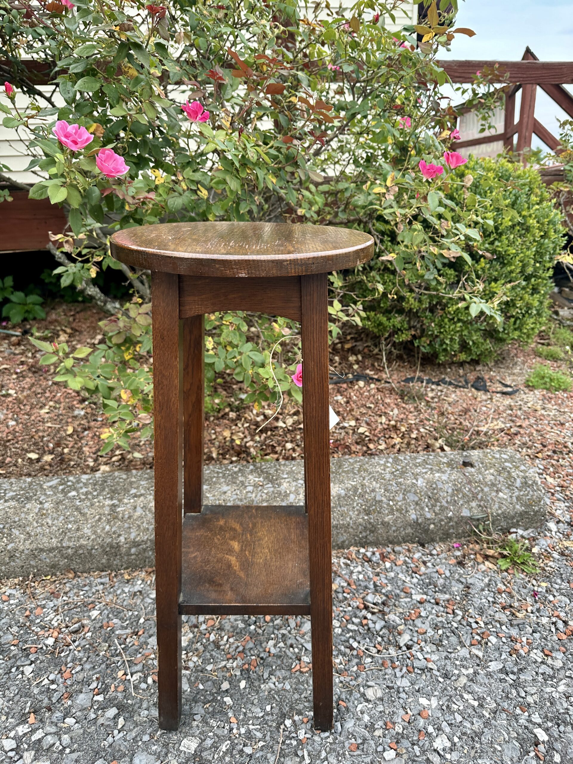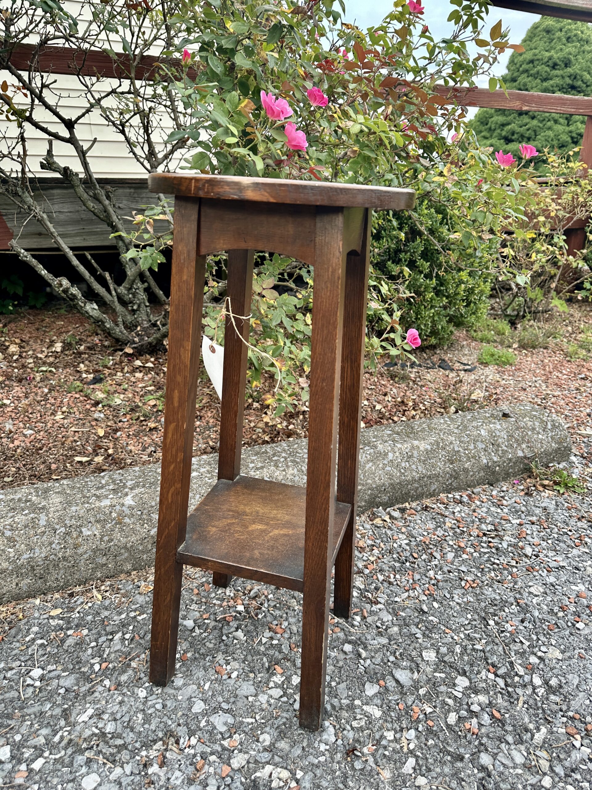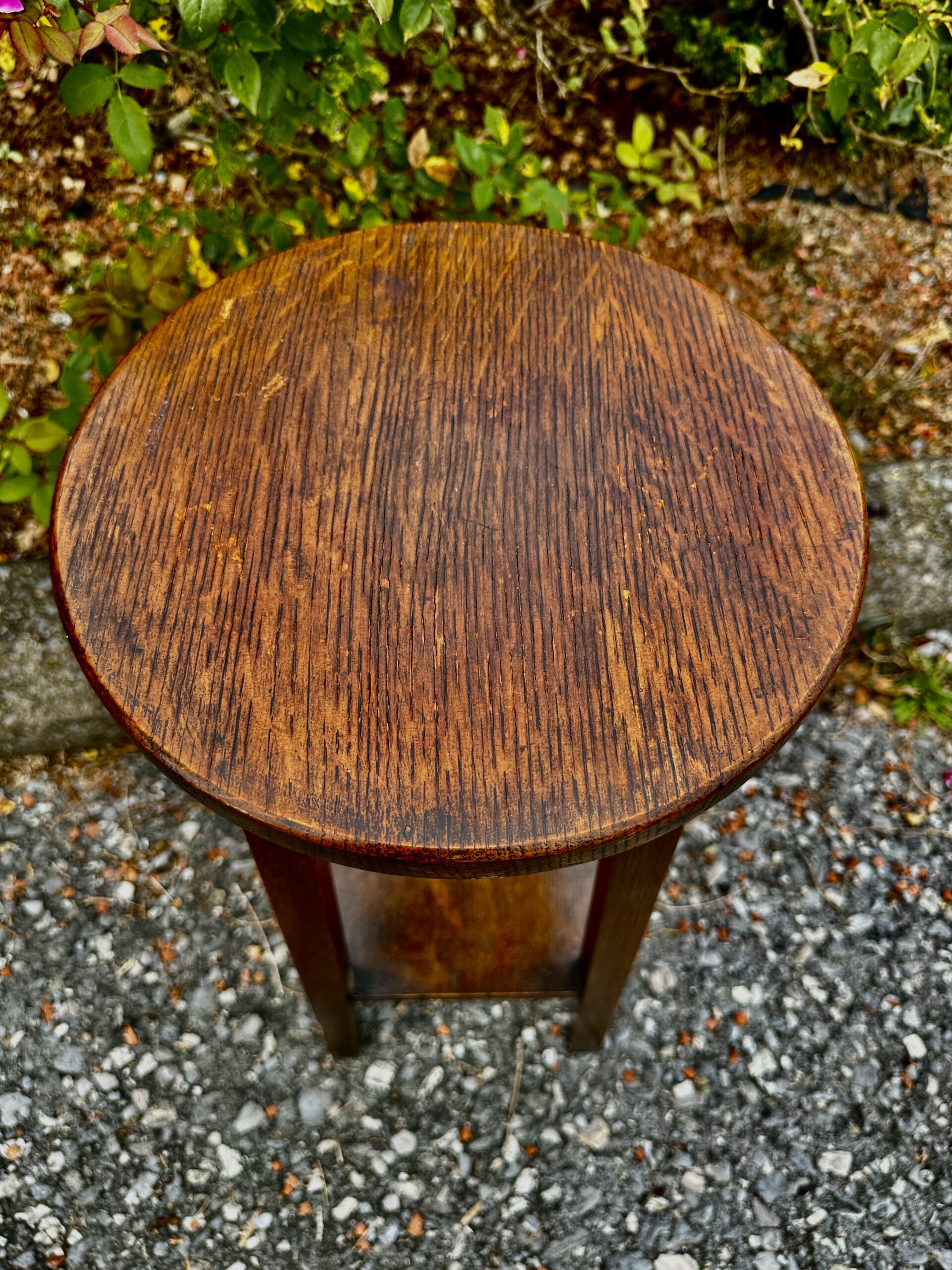This is a rare Charles Limbert Tall Stand with a round top, original finish, and was made with a good selection of Quarter Sawned Oak.