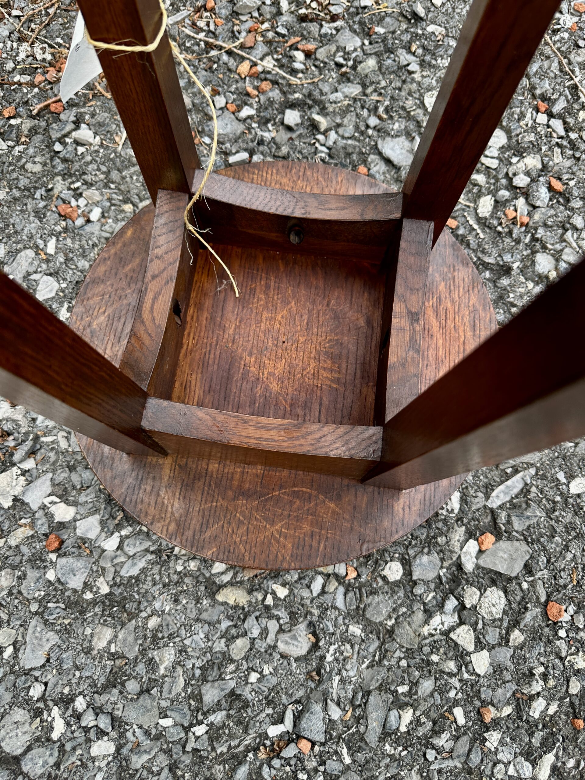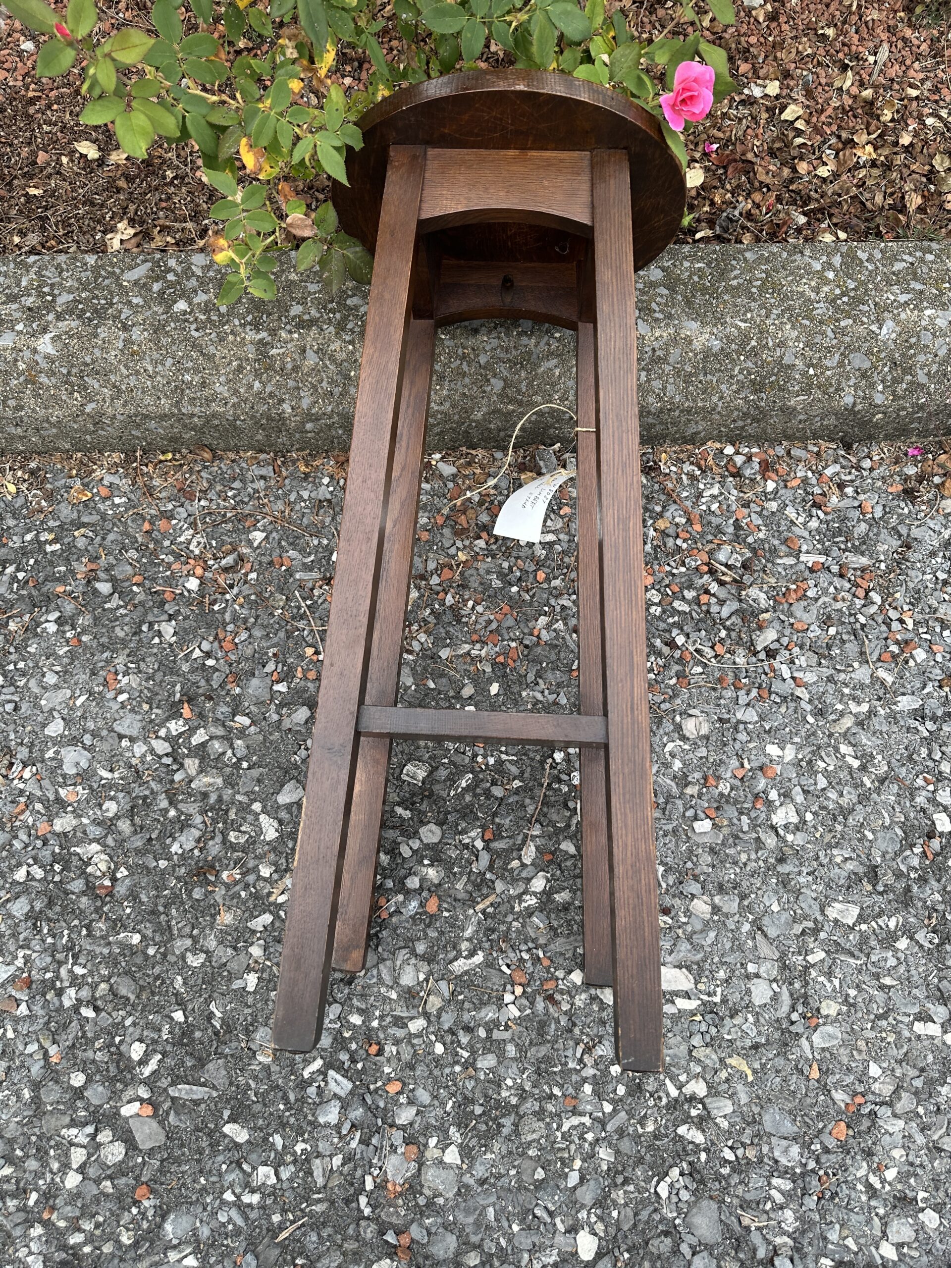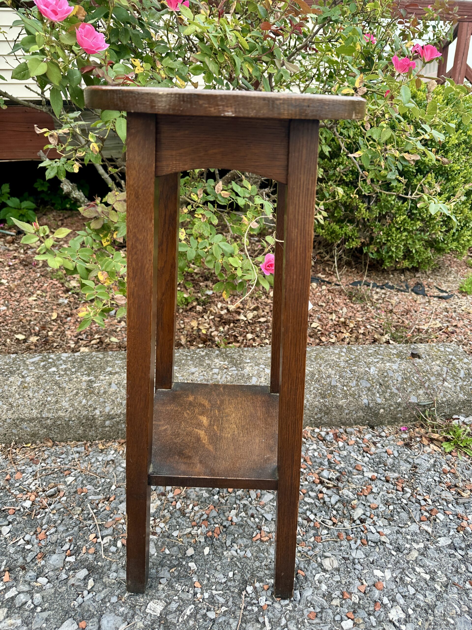 This is a rare Charles Limbert Tall Stand with a round top, original finish, and was made with a good selection of Quarter Sawned Oak.