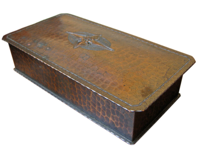 This is a very nice antique Roycroft hand hammered copper cigarette box from the early 1900’s Mission and Arts & Crafts period in very good condition.
