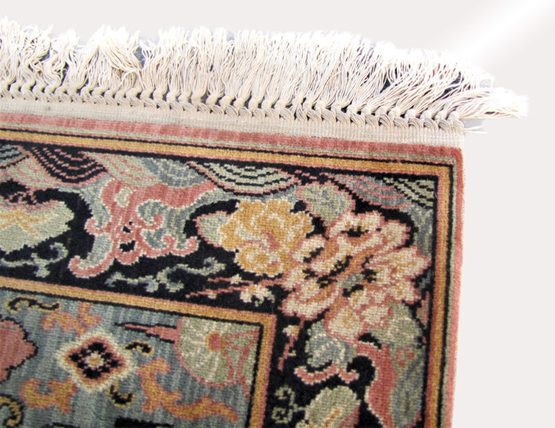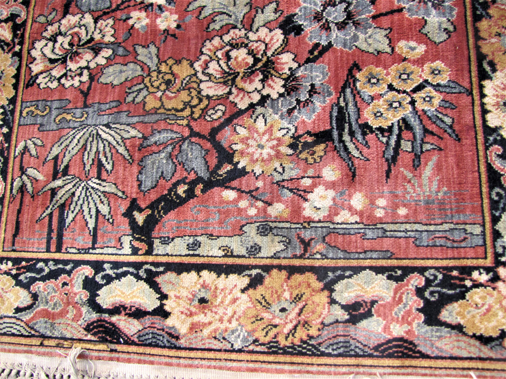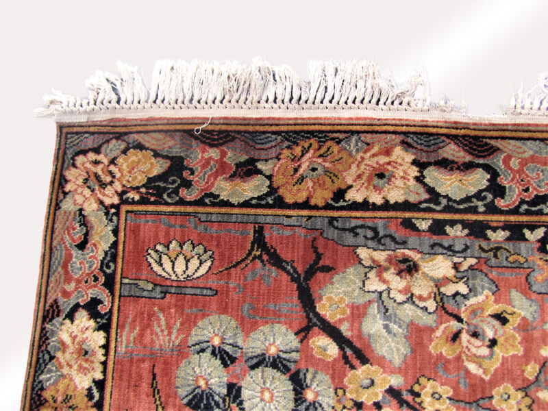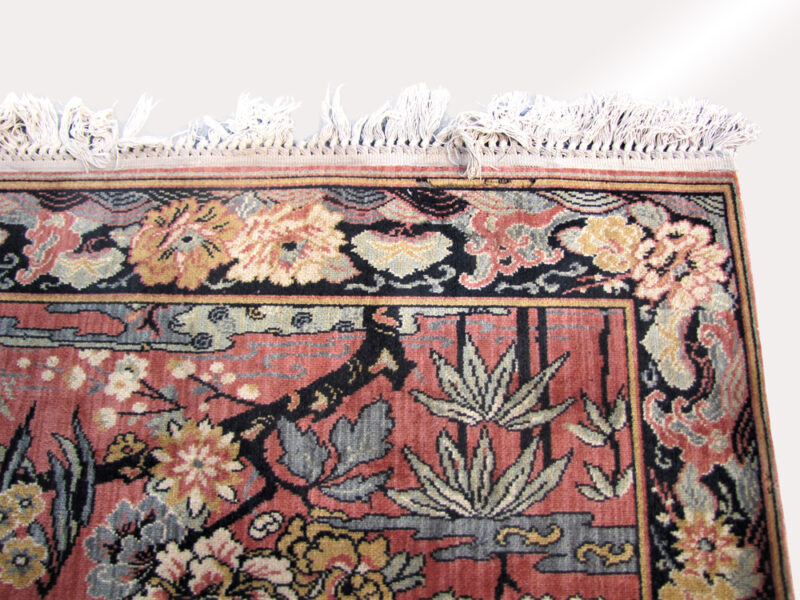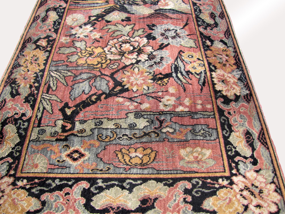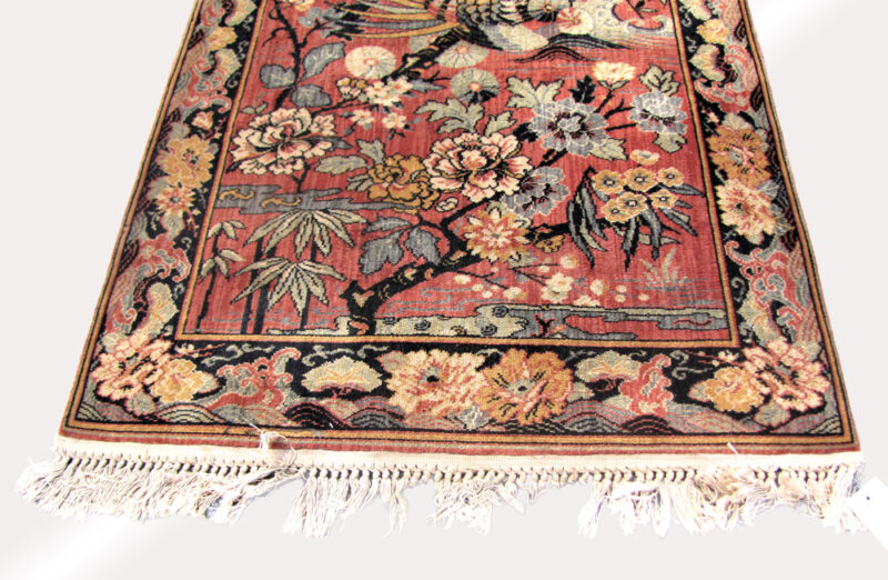 This is an antique Anglo Persian Wilton rug with a Bird of Paradise design.