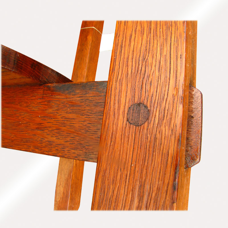 The piece is with bottom round shelf and thru tenon conduction on each leg on the?bottom and pinned all over and marked.
