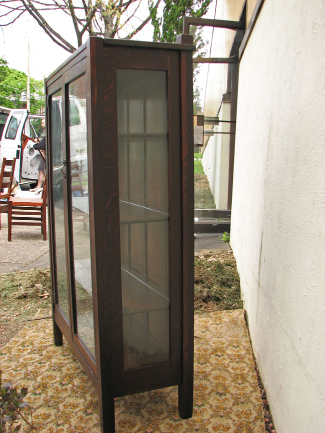 This is a nice antique Stickley Brothers china cabinet from the early 1900’s Mission and Arts & Crafts period in very good condition.