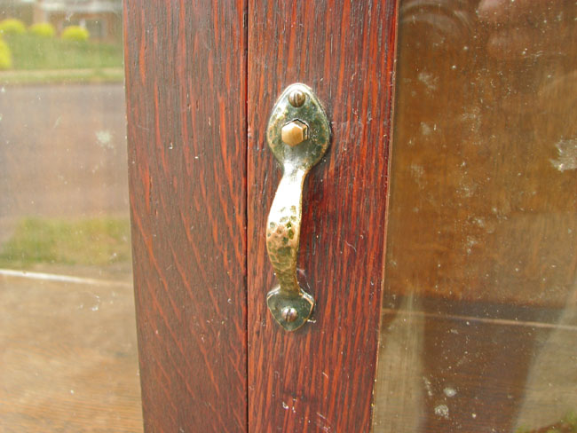 The original hammered brass hardware is present and the glass is original with no cracks or chips.
