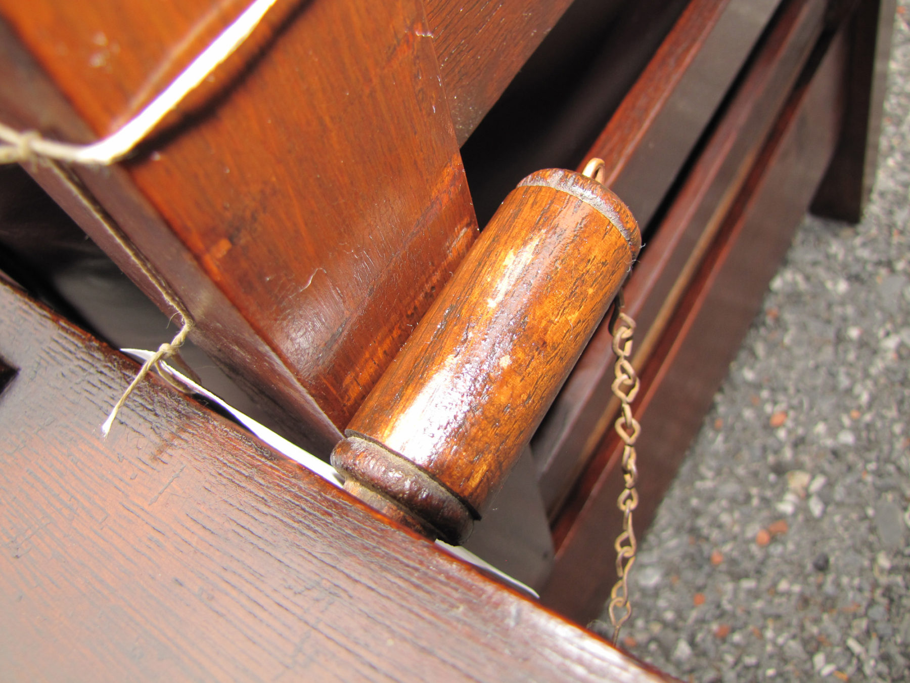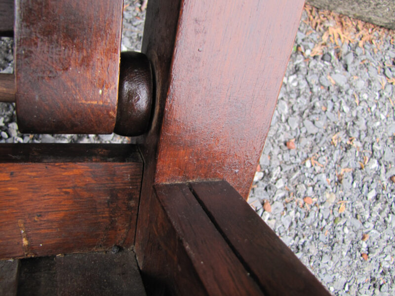 The chair is with no repairs, cracks or replace parts sturdy and strong with recovered the seat and back with top quality reddish leather with 100% cotton fill(no cheap foam).