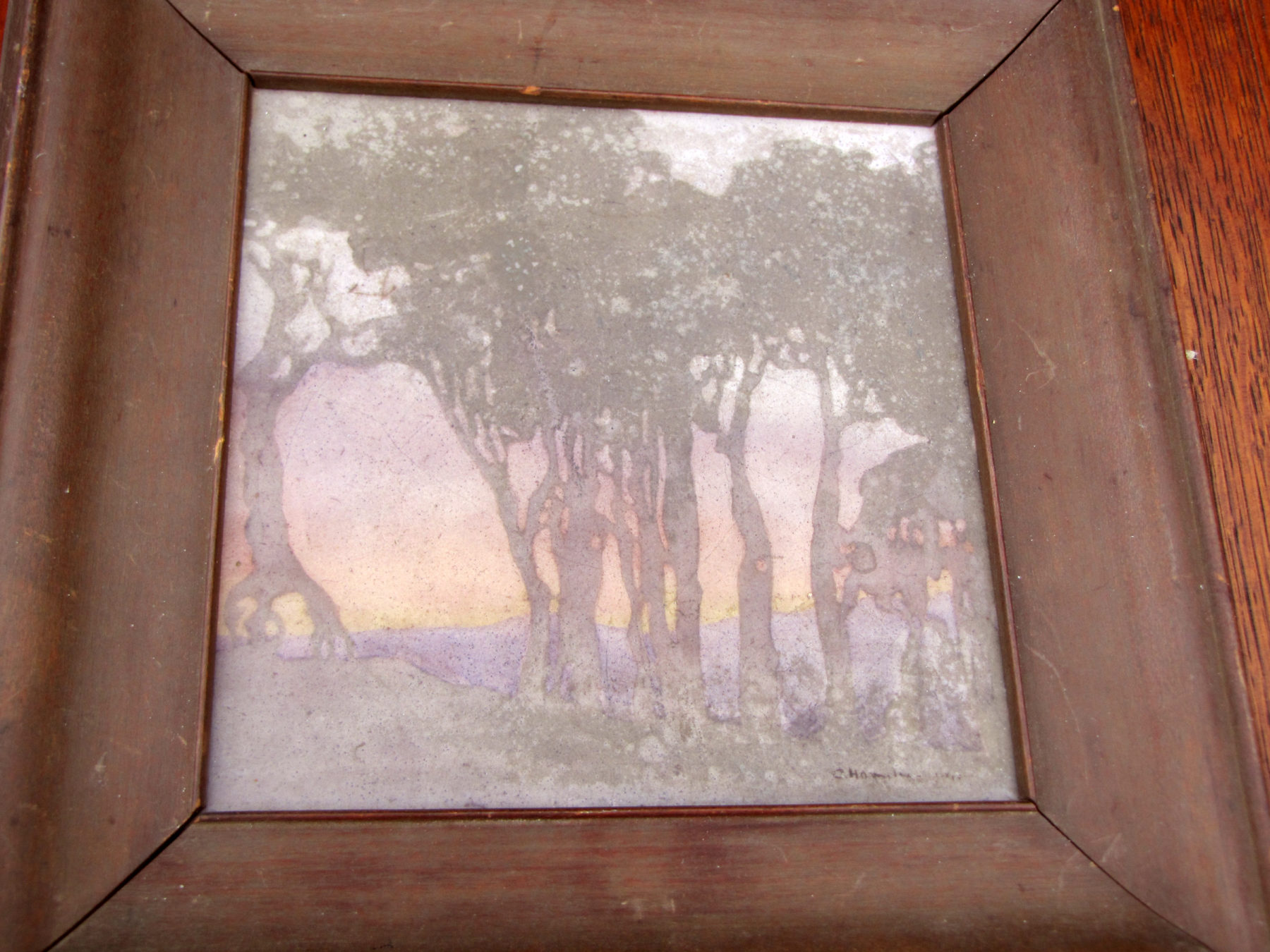 This is an antique arts and crafts tile in a wooden period frame I very good condition with no repairs or damage from the early 1900’s.