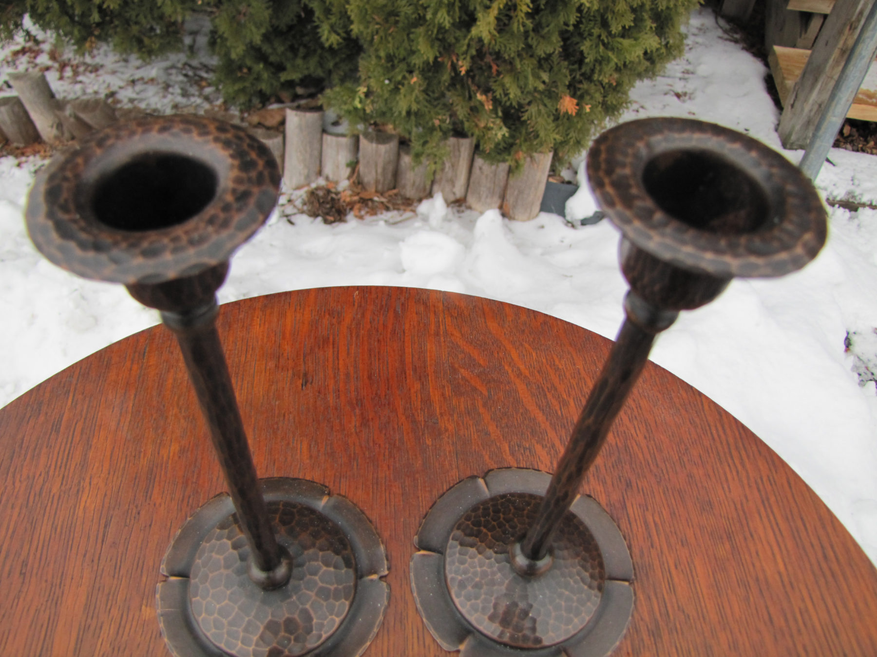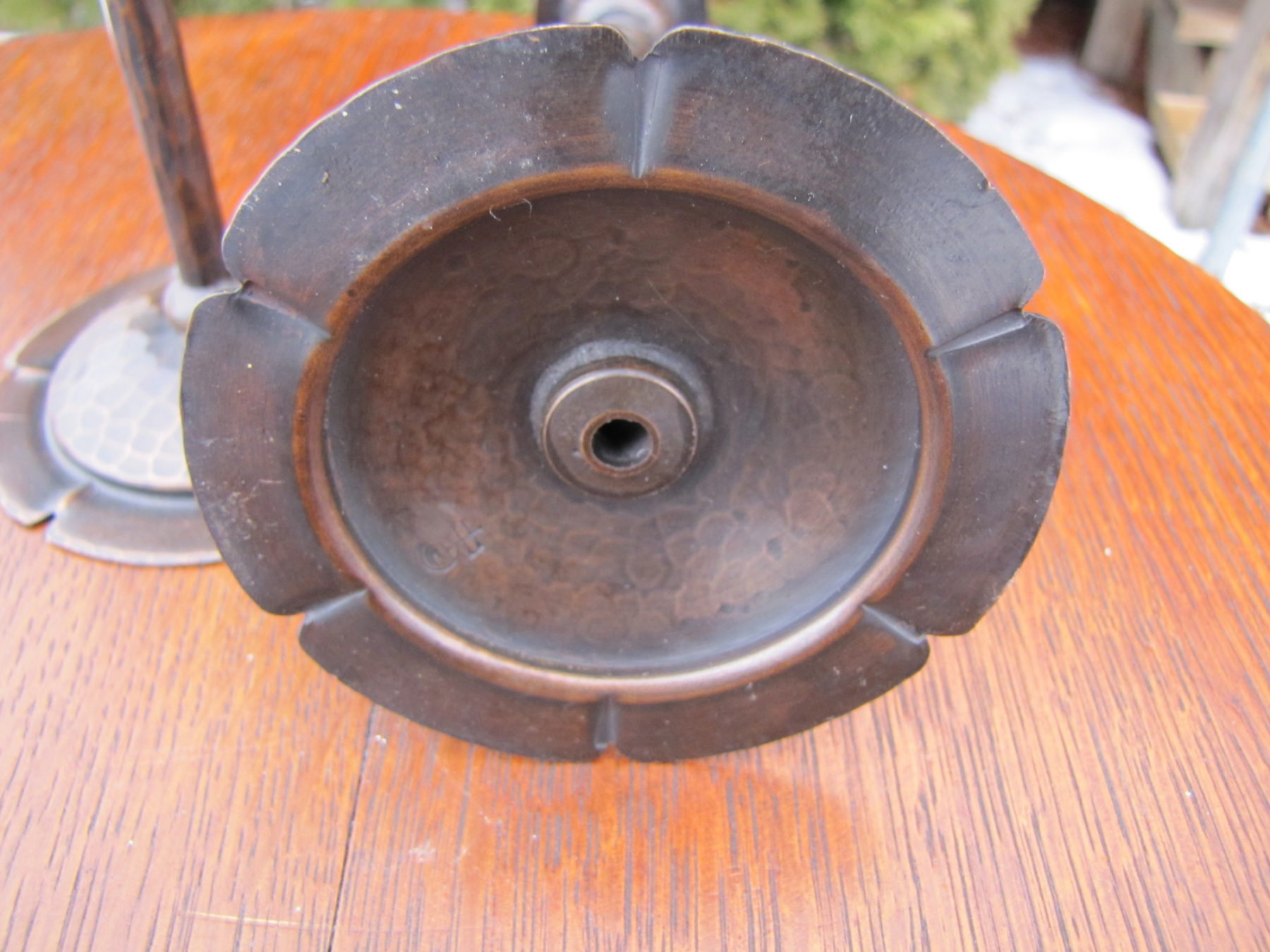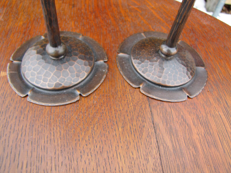 This is a pair of Roycroft hammered copper candle holders, in very good condition?with no dent or repairs.