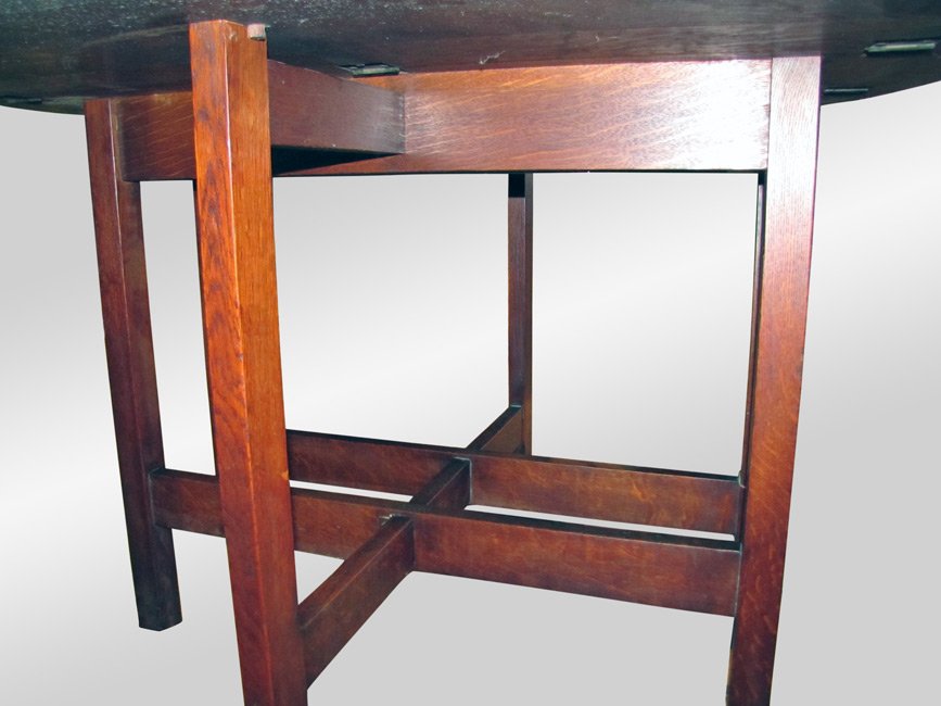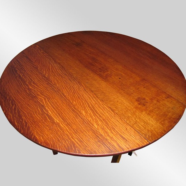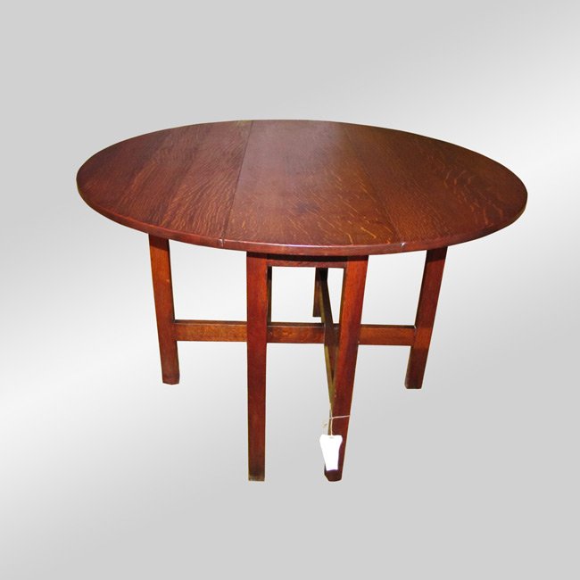 This is a great looking Stickley Brothers drop leaf table in very good condition. This has great original finish and color. There are no repairs or replaced parts. This is made from a great selection of oak and is marked with Stickley Brothers model number 2822. This table is sturdy and strong and ready for use in your home.