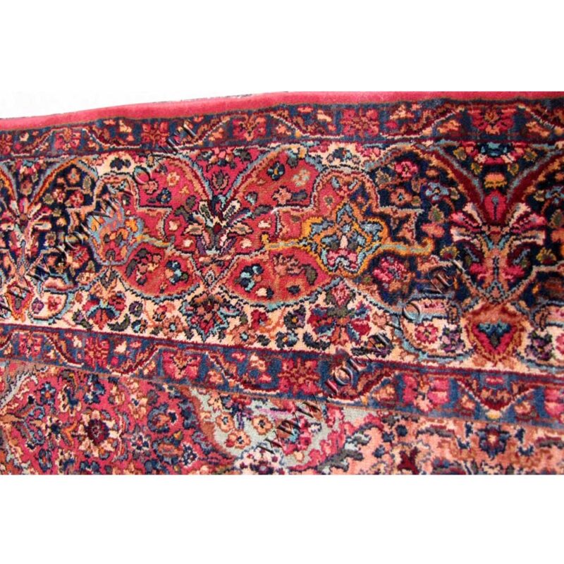 The rug is very nice with great old fashion colors as rust, navy blue, ivory, lit green, lit blue, peach and I vory. Later on Karastan company closed its door and another company purchased their name.