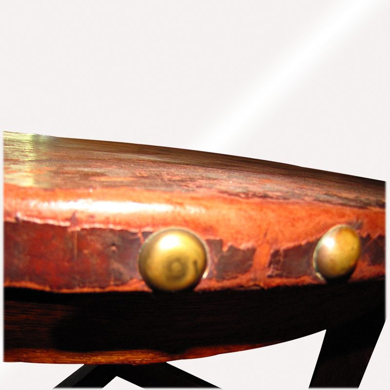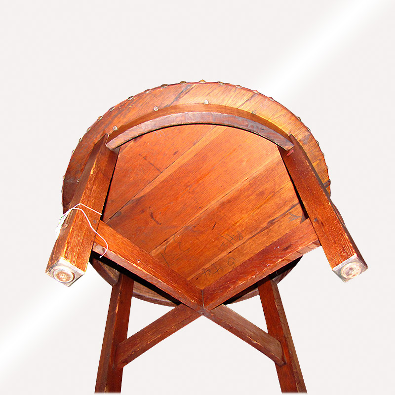 The top is 1.25 inch thick, great size and is distinctive and decorative form with the original tacks.