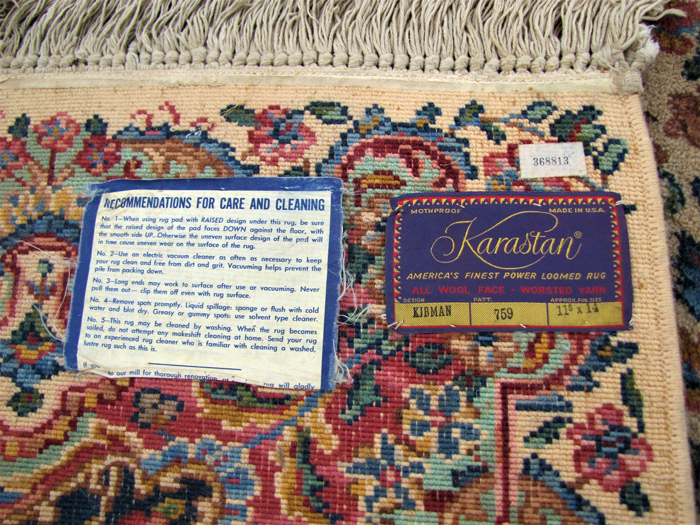 This is a vintage, large Karastan rug (#759) with a Persian Kerman design from the 1980s.