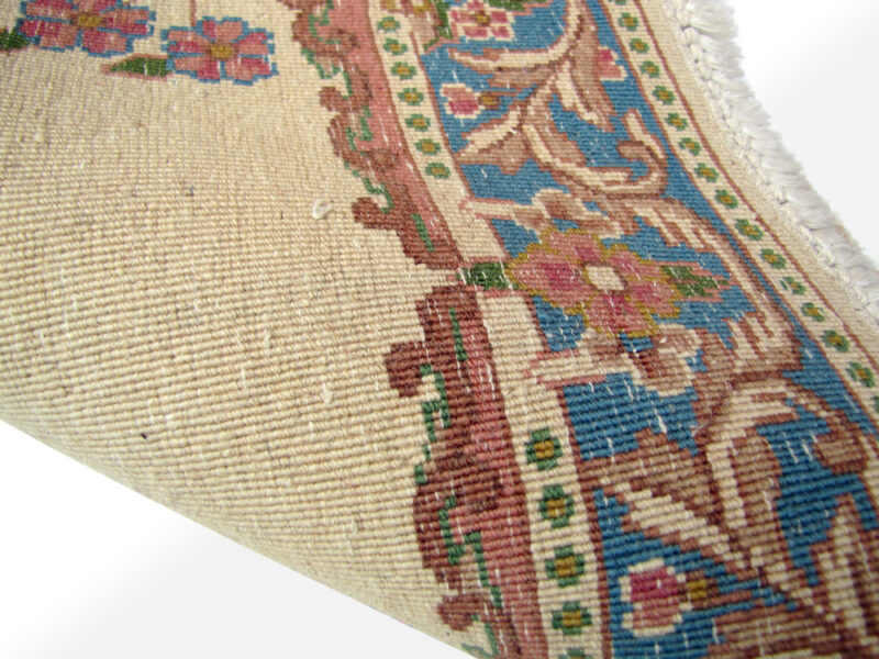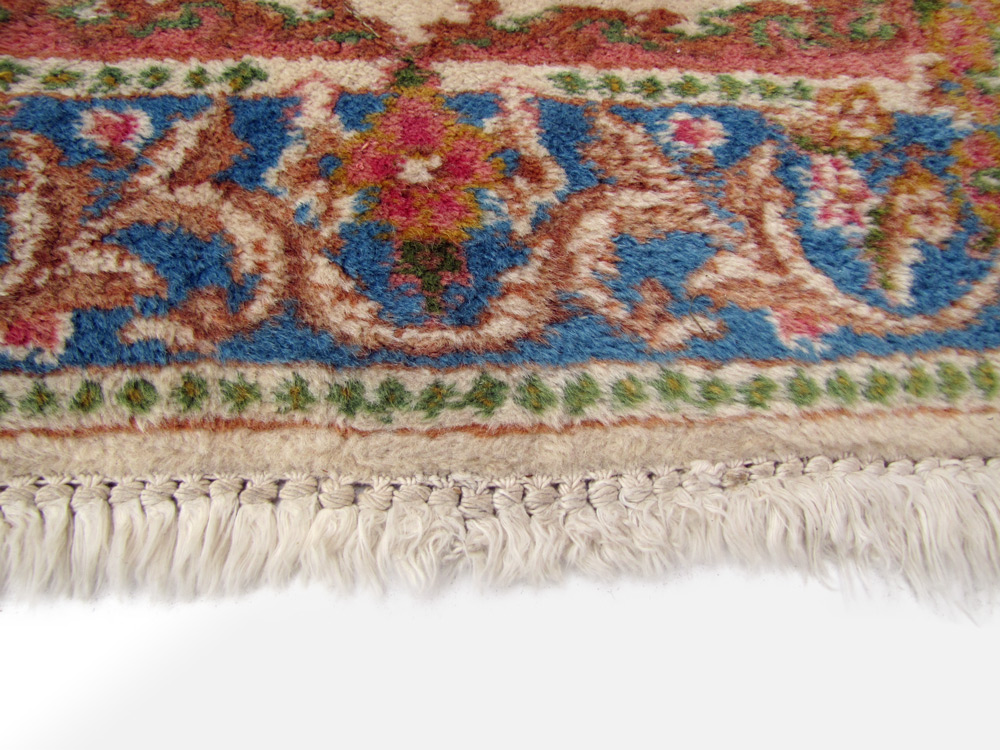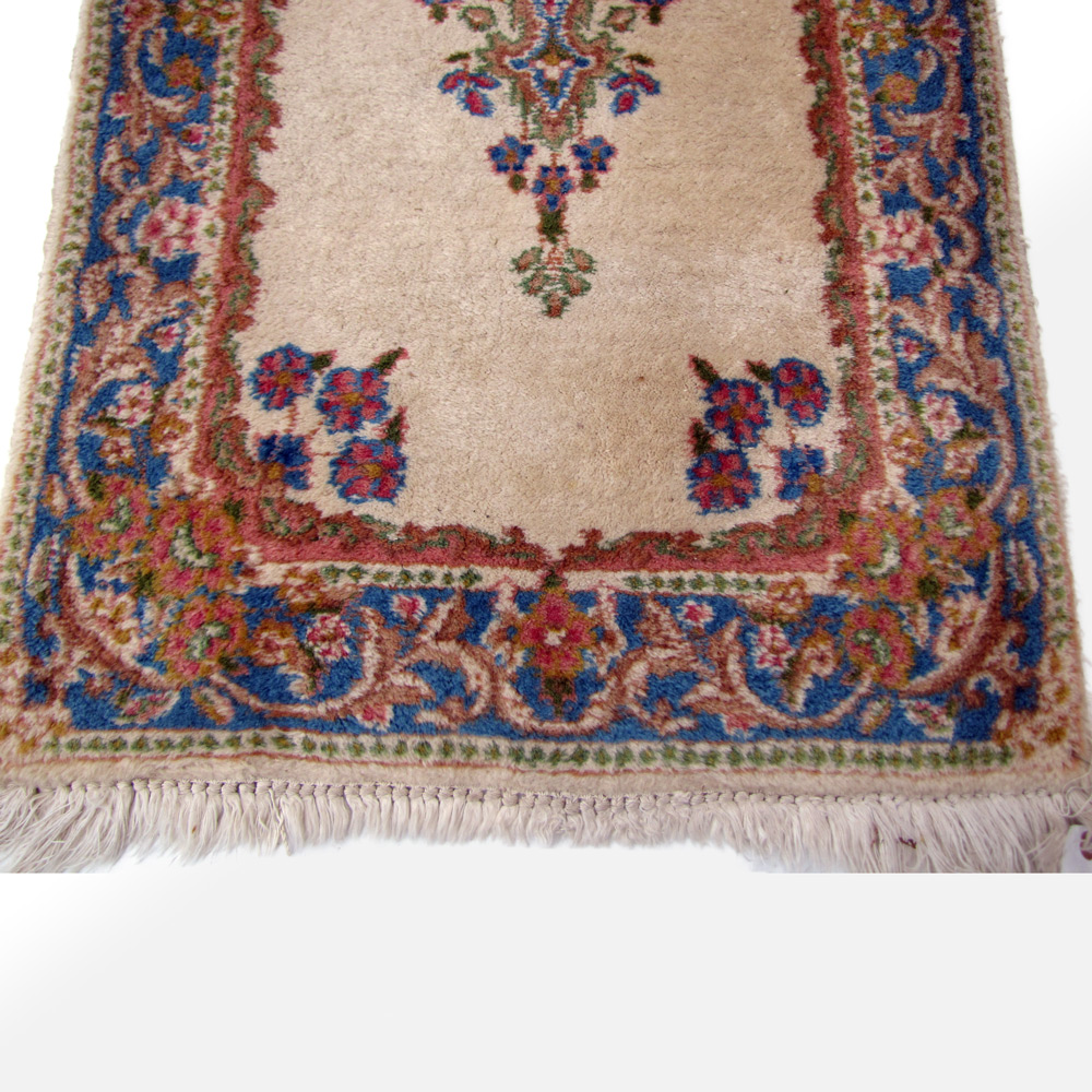 This is a vintage Persian Kerman handmade rug from the 1940s made in Iran.