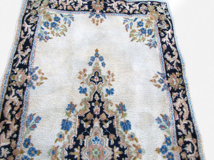 This is a vintage Persian Kerman rug from the 1960s made in Iran.
