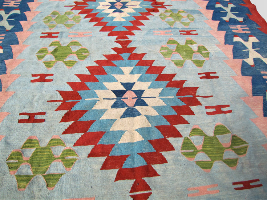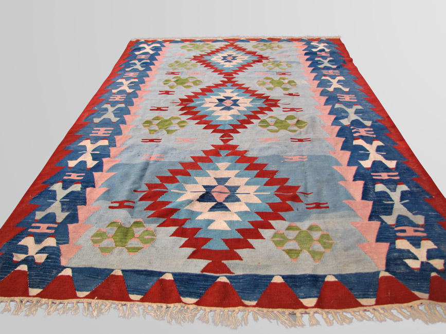 This is a Vintage Turkish Killian Flat Weave Rug from the 1970s.