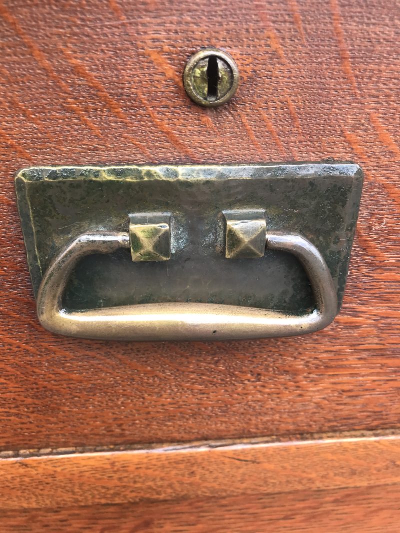 This is an antique L&G Stickley Onondaga Shop dresser from the early 1900’s in untouched condition with excellent original finish and selection of oak. All lines are straight with no wear. This is one of the best conditions we have ever had. The dresser is built with great panel sides and the best L&G Stickley hardware pull. All other pulls are lower quality. The piece, including the mirror, has all original hardware. The cabinet is double pinned, and the drawers slide easily. The drawers do not drop as all rails are in good condition.