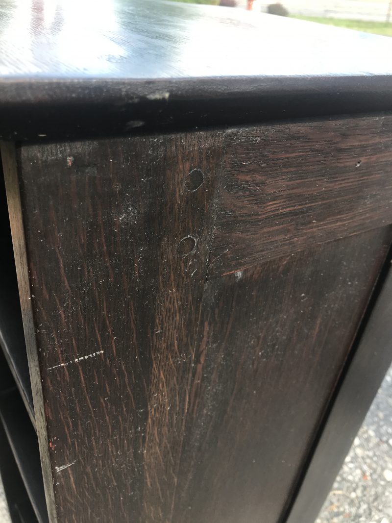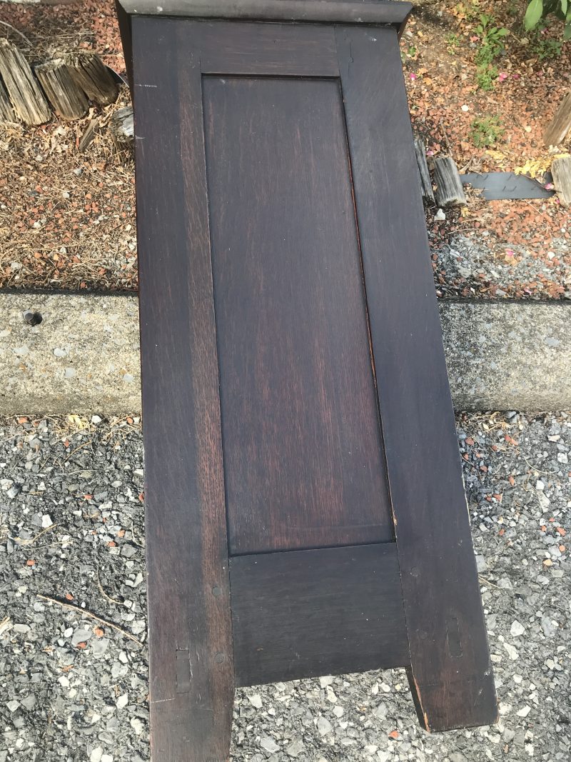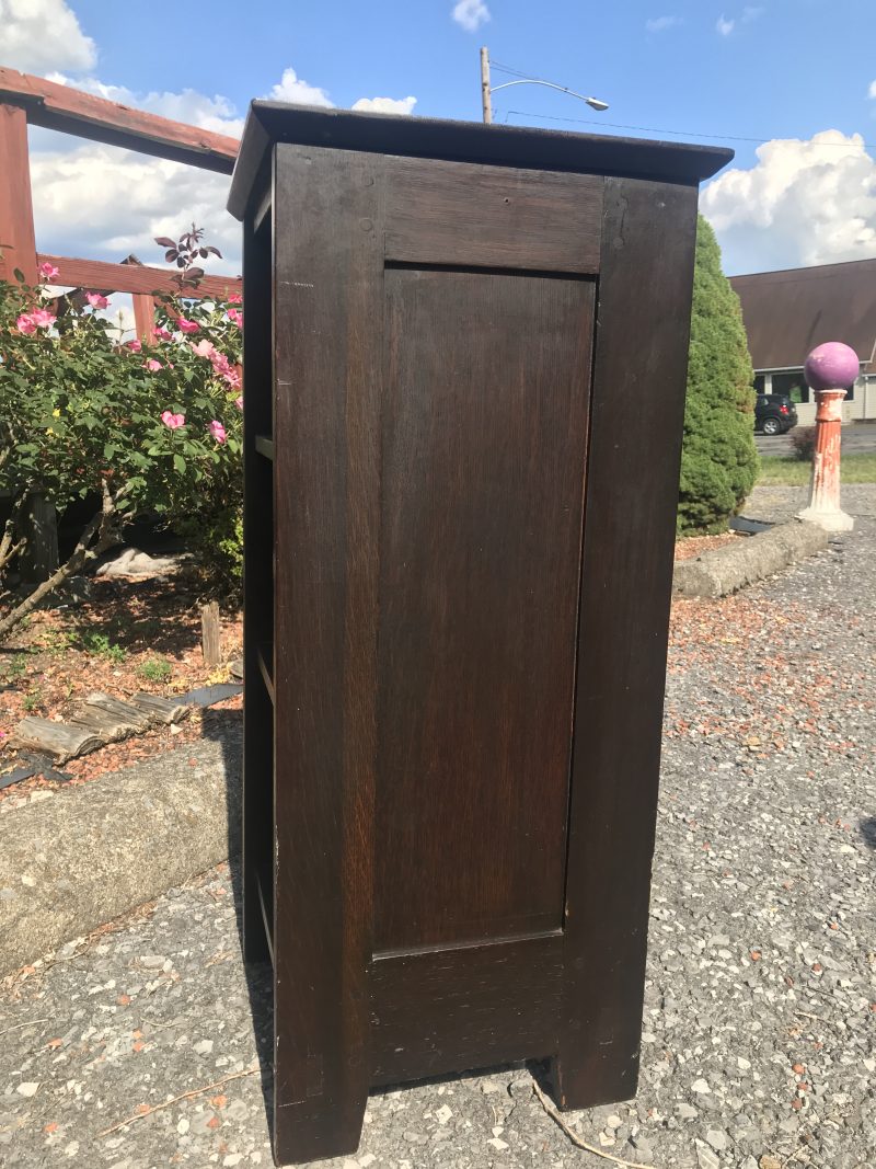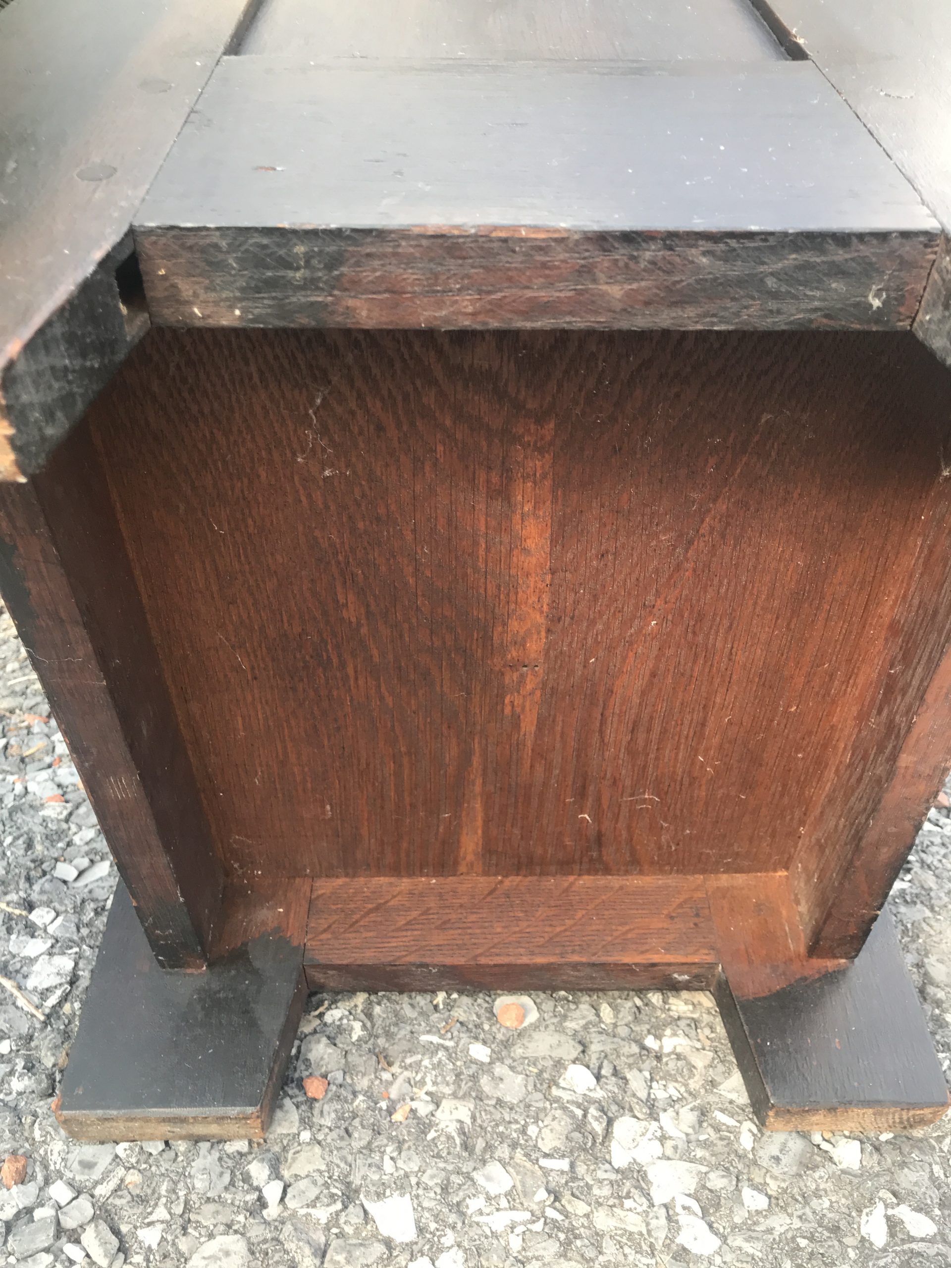 This is an important piece of work by Gustav Stickley circa 1901. It is a magazine stand or bookcase. It is constructed with flush through tenant construction and double pinned all around and panel sides, as pictured. The stand is with original fumed black finish with minor wear and without any overcoat. Over the years, we have sold only a few of this model, because it is very rare. This one has the best original fumed black finish that we have ever found.
