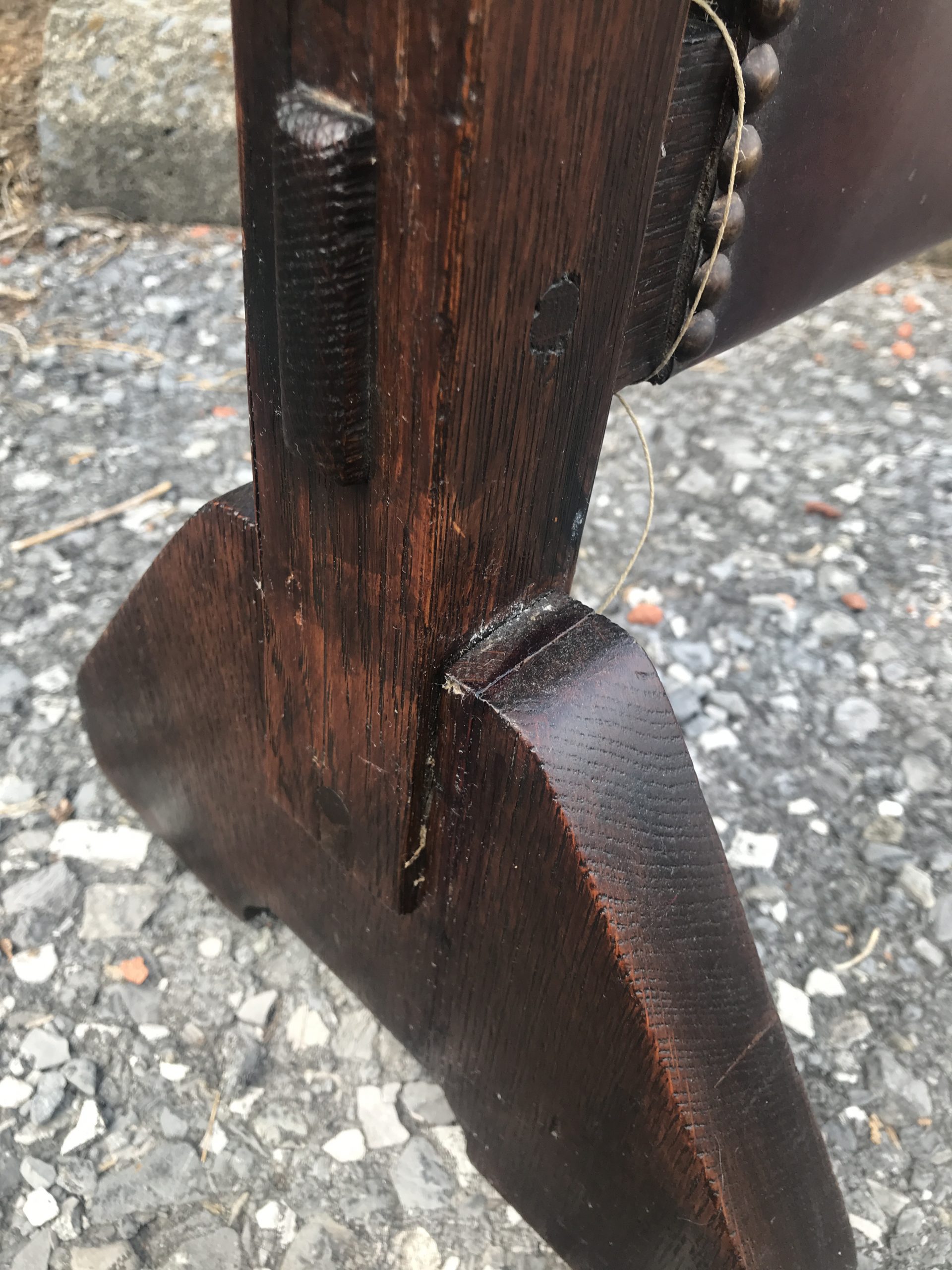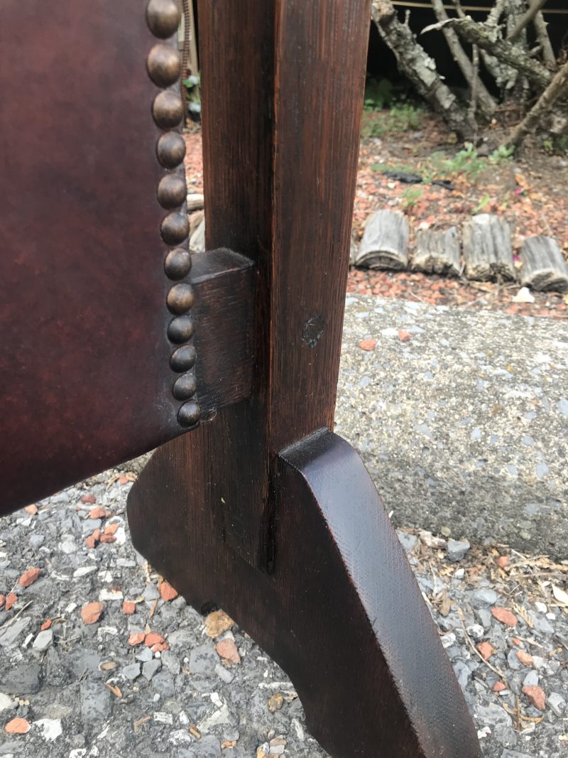 The finish is original and so is the leather on the stand. It comes with the original tacks.