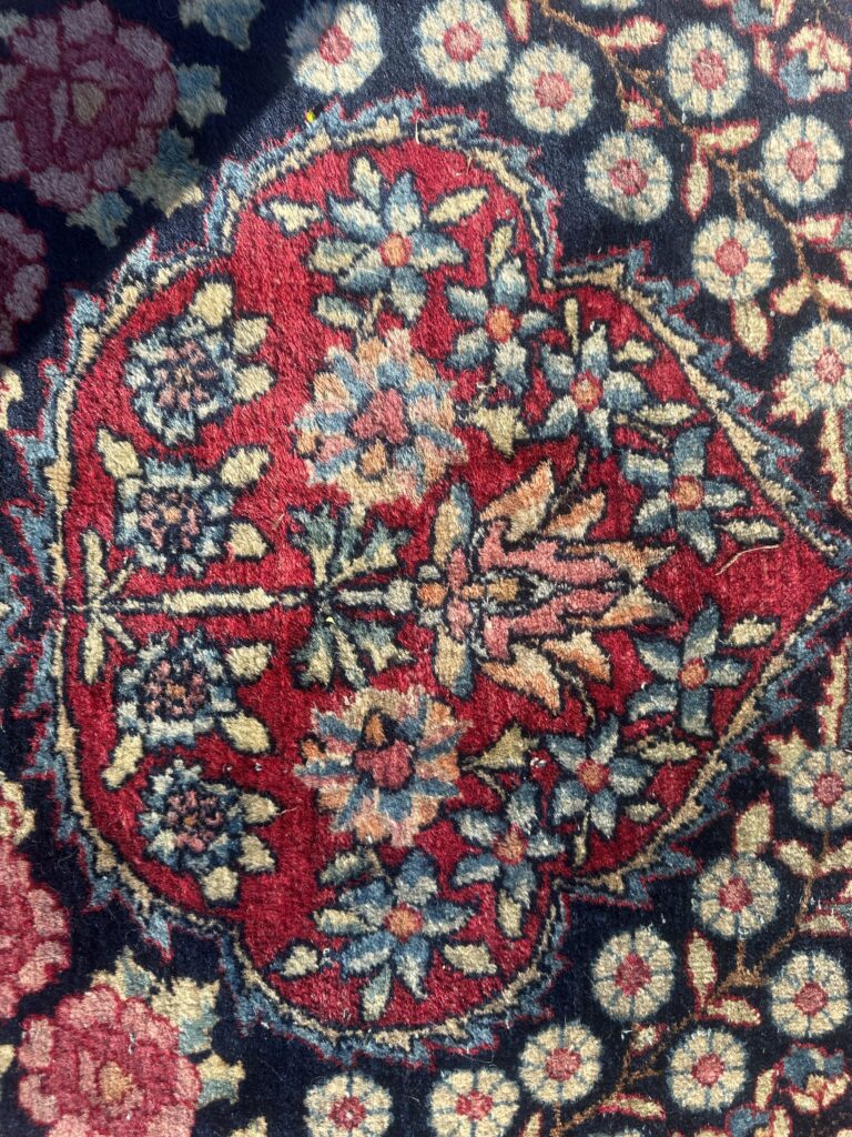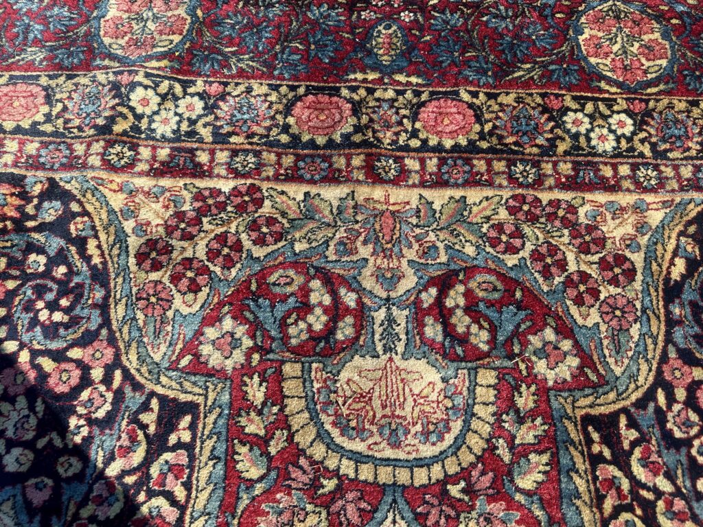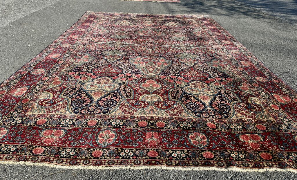 THIS IS A GREAT LOOKING LEVAR KERMAN FROM 1890S IN VERY GOOD CONDITION WITH GREAT WEAVE (AS YOU CAN SEE FROM THE PICTURE OF THE BACK OF THE RUG) THE RUG IS 100% FULL WOOL AND FULL PILE AND ITS VERY RARE TO FIND AND WITH GREAT NATURAL DYES 124IN X 187IN