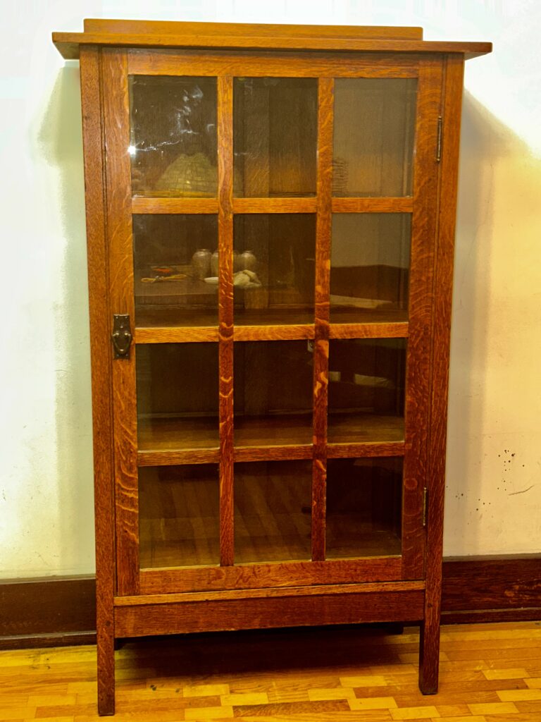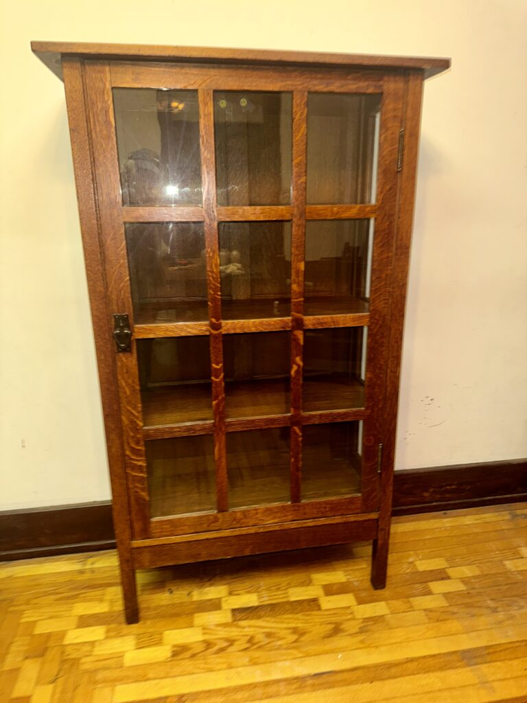 w7961 ANTIQUE GUSTAV STICKLEY GOOD ONDOOR CHINA CABINET C.1908